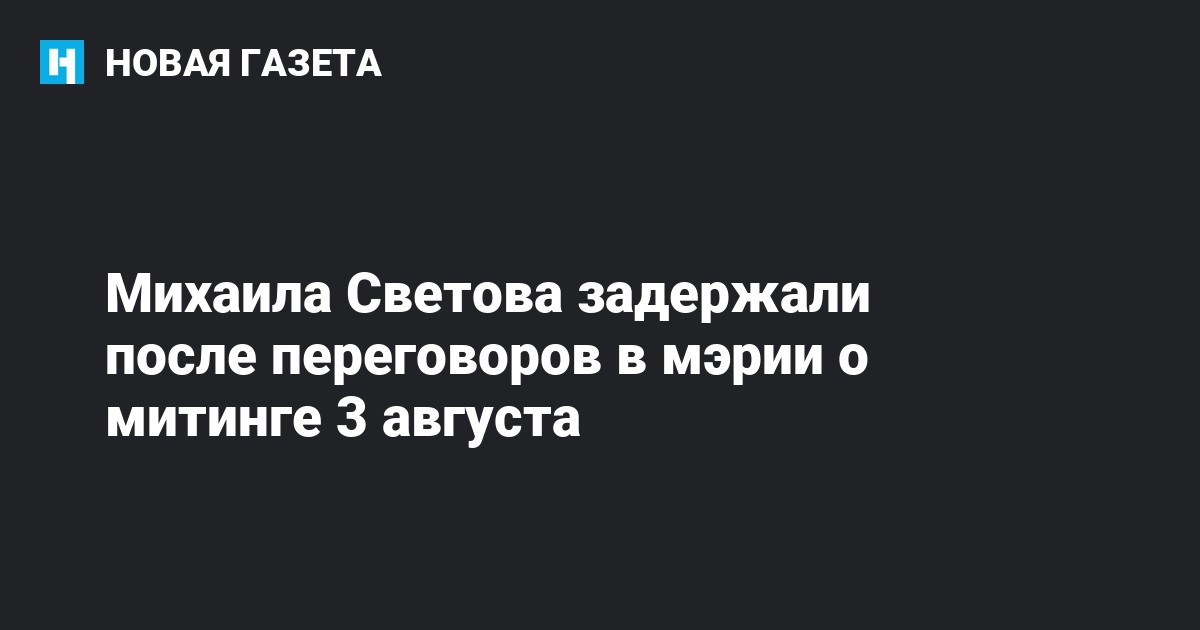 Члена федерального комитета Либертарианской партии Михаила Светова задержали после переговоров в мэрии о митинге 3 августа.