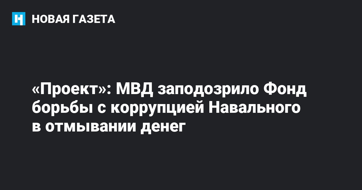 «Проект» со ссылкой на анонимные источники, близкие к руководству силовых структур, утверждает, что МВД проводит доследственную проверку в отношении сотрудников Фонда борьбы с коррупцией Алексея Навального на предмет отмывания денег и неуплаты налогов.