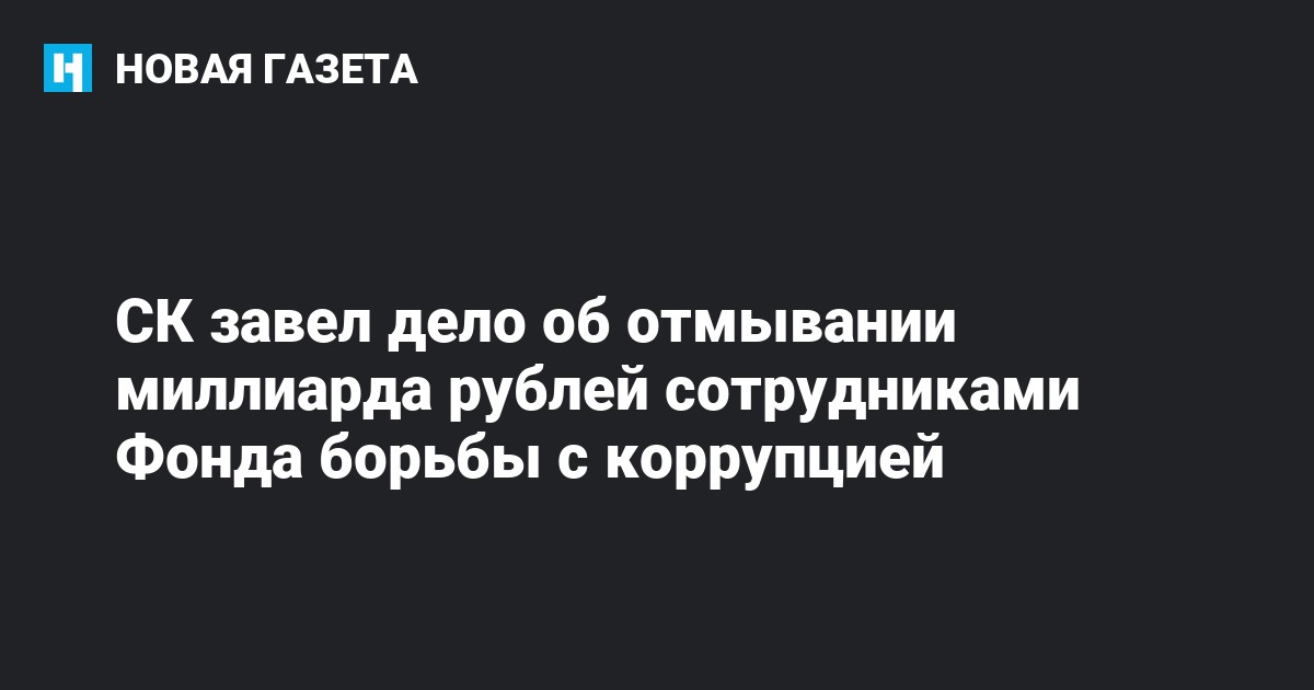 Следственный комитет возбудил уголовное дело об отмывании миллиарда рублей сотрудниками Фонда борьбы с коррупцией оппозиционера Алексея Навального (ч. 4 ст. 174 УК). О проведении доследственной проверки по этому поводу накануне сообщали источники «Проекта».