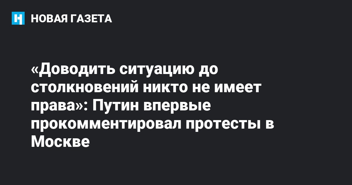 Он заявил, что «граждане имеют право на мирные… протесты», но «никто… не имеет права нарушать действующий закон и доводить ситуацию до абсурда, либо до столкновений с властями». «Это нарушение закона, и все, кто виновен в этих нарушениях, должны быть привлечены к ответственности в соответствии с этим самым российским законом», — заявил он.