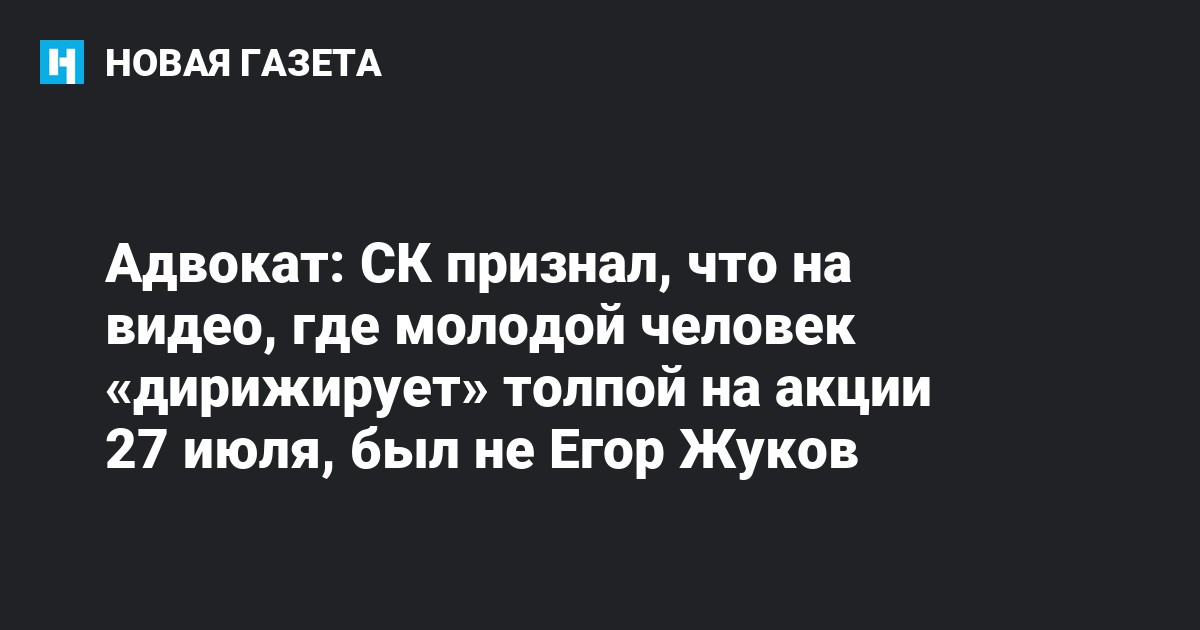 Адвокат Илья Новиков рассказал в эфире радиостанции «Эхо Москвы», что Следственный комитет признал, что на видеозаписи, где человек дирижирует толпой на акции протеста в Москве, изображен не студент Высшей школы экономики (ВШЭ) Егор Жуков.