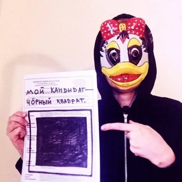 И наконец, чистый арт в духе новосибирских монстраций. Например: «Мой кандидат — черный квадрат». И изображен квадрат для наглядности.