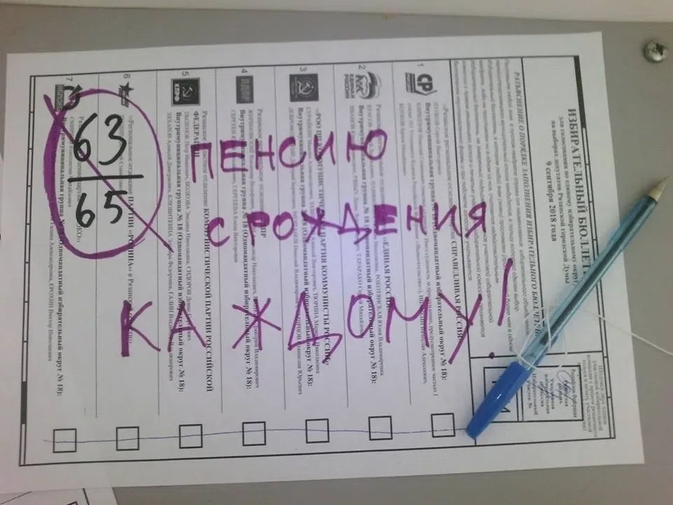 Другой тип улучшенных бюллетеней — жалобы на жизнь. Жалуются на уничтожение парков, на пенсионную реформу («Пенсия с рождения каждому!»), на маленькие зарплаты, на ужасную медицину. Бюллетень как жалобная книга. Чувствуется, что у людей накопилось.