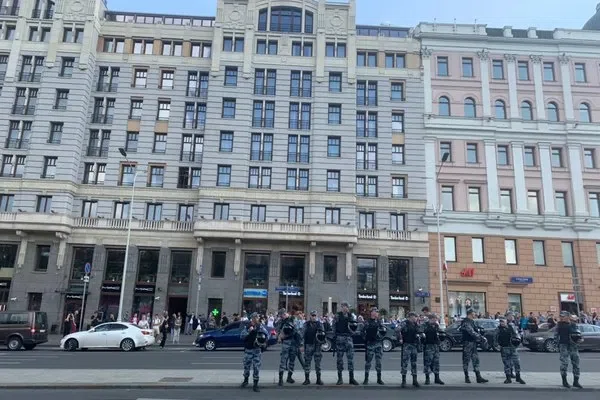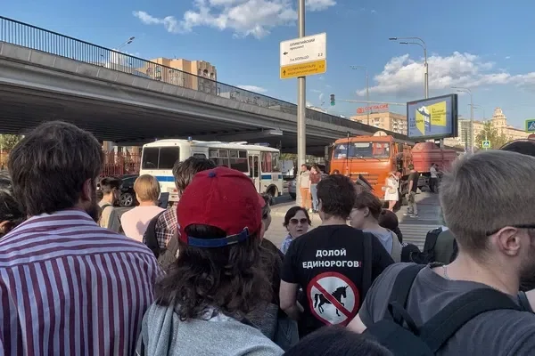 Вместе с протестующими идет и спецкор «Новой газеты» Илья Азар. Часть людей дошли почти до Цветного бульвара. Они идут молча и сильно рассредоточившись. Рядом с протестующими едет автозак. Он подъезжает, останавливается, сколько-то стоит и снова продолжает движение вместе с людьми.