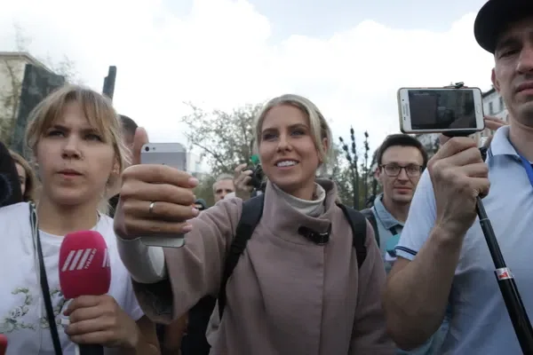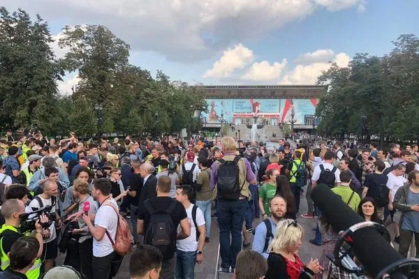Любовь Соболь ведет онлайн в окружении десятка журналистов, ее буквально облепили. Среди вопросов: «Как вы думаете, почему вас до сих пор не задержали?» Любовь отвечает, что она ничего не нарушает и что люди просто мирно идут по улицам Москвы.