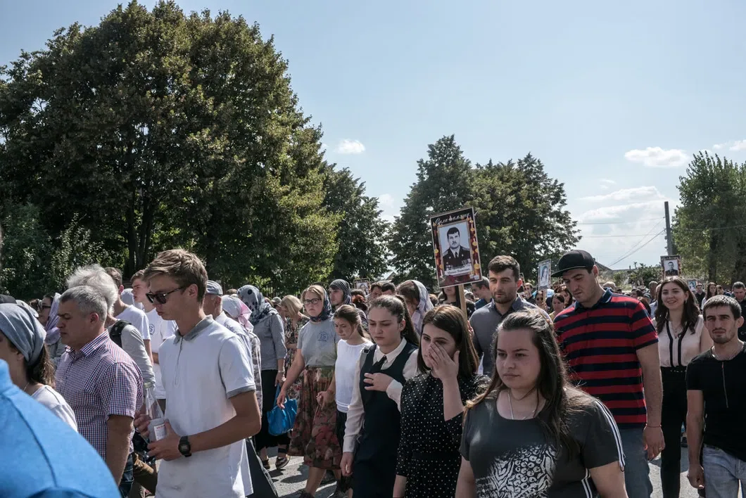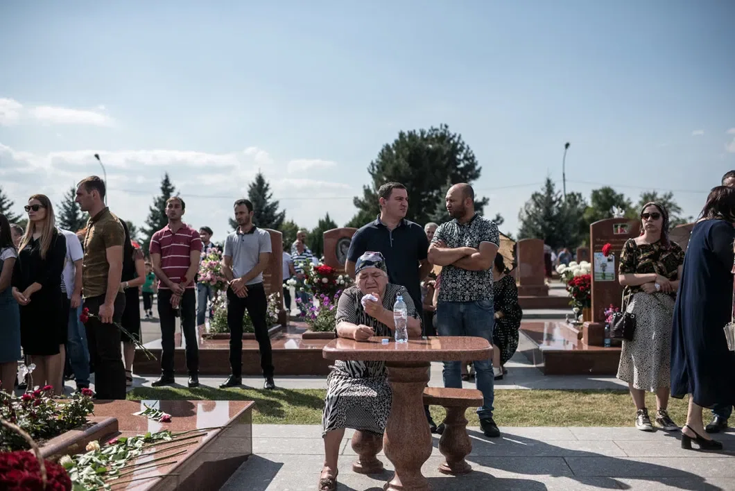 Лара кормит нас пирогами, расспрашивает, как идет расследование теракта (она была одним из заявителей по делу «Тагаев и другие против России»), показывает большие, очень аккуратные, вставленные в золоченые рамы вышивки. На одной — улыбающийся Заурбек. 13-летним, спустя семь лет после теракта, он залез в ванну в доме своей бабушки — и внезапно умер. Врачи подозревали сердце, от вскрытия Лариса отказалась. Похоронили Заурбека на кладбище во Владикавказе. Когда весь Беслан идет на кладбище «Город ангелов», Лариса едет туда.