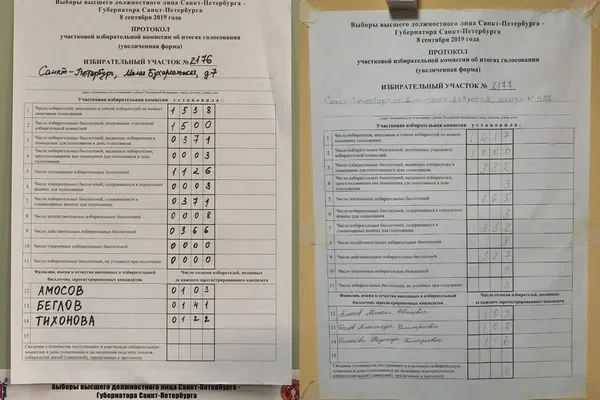 По данным, полученным после обработки 0,1% протоколов на выборах губернатора Петербурга, самовыдвиженец Александр Беглов набирает 83,61% голосов. У Михаила Амосова («Гражданская платформа») — 11,23% голосов, у Надежды Тихоновой («Справедливая Россия») — 5,16%.