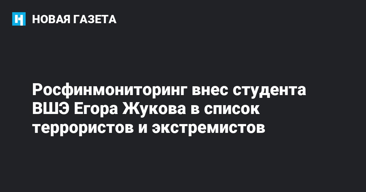 Росфинмониторинг внес студента Высшей школы экономики Егора Жукова, который ранее был фигурантом дела о «массовых беспорядках» из-за акции 27 июля, в список террористов и экстремистов. Список опубликован на сайте службы.