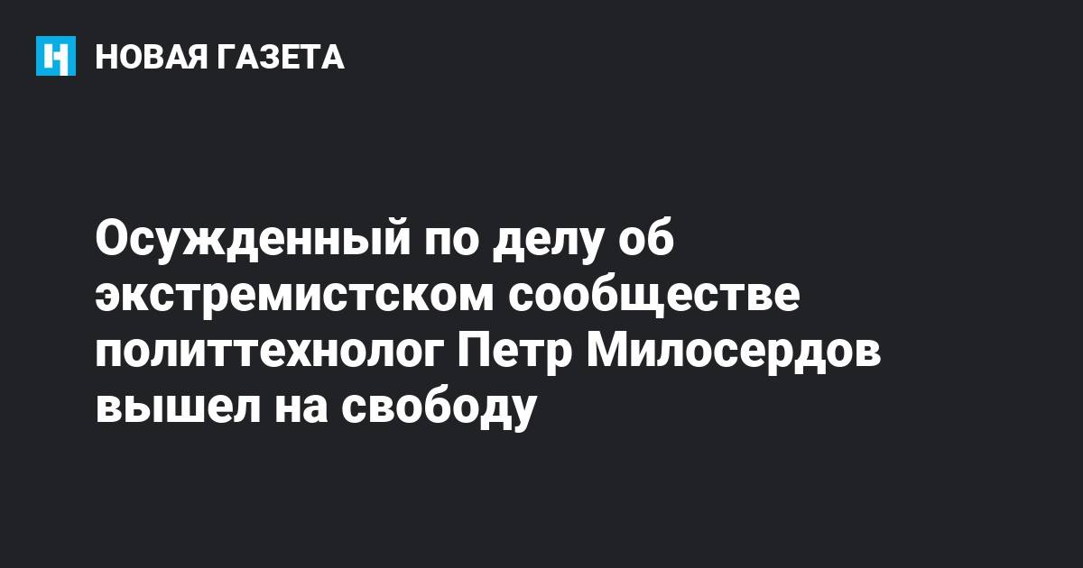 Политтехнолог Петр Милосердов, осужденный по делу о создании экстремистского сообщества, вышел на свободу.