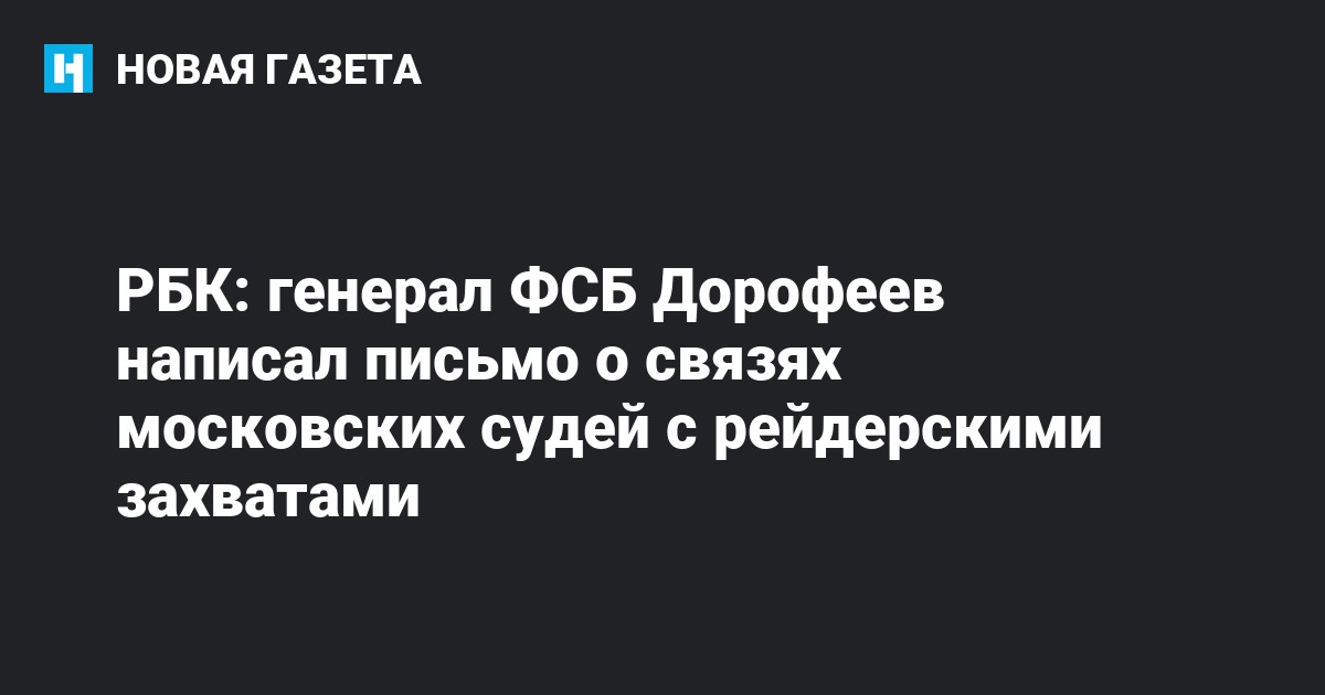 Глава управления ФСБ по Москве и Московской области, генерал-полковник Алексей Дорофеев написал письмо о возможном содействии московских судей с рейдерскими захватами, в организации которых подозревают юриста Кантемира Карамзина (ст. 159 УК).