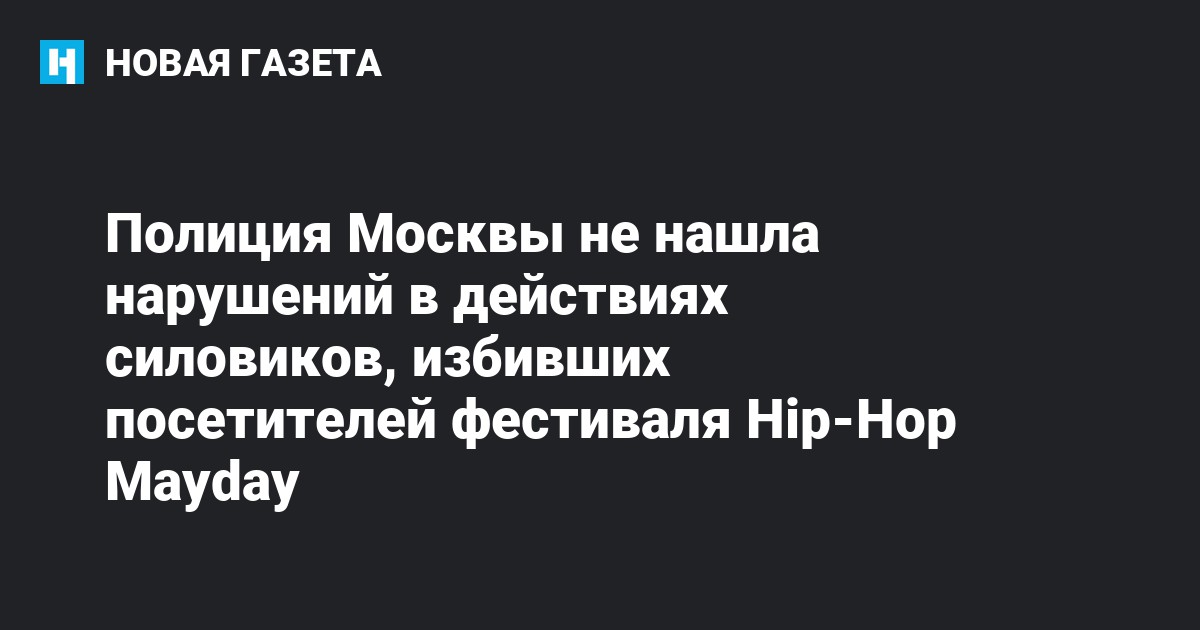Главное управление МВД по Москве не нашло нарушений в действиях сотрудников полиции и Росгвардии, которые избивали посетителей фестиваля Hip-Hop Mayday 1 мая. Об этом в телеграм-канале сообщает «Правозащита Открытки».