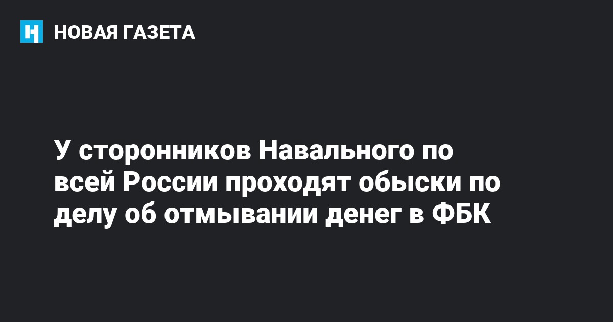 По всей России полиция проводит обыски у сотрудников и волонтеров штабов политика Алексея Навального по делу об отмывании денег в Фонде борьбы с коррупцией. Об этом сообщает «ОВД-Инфо».