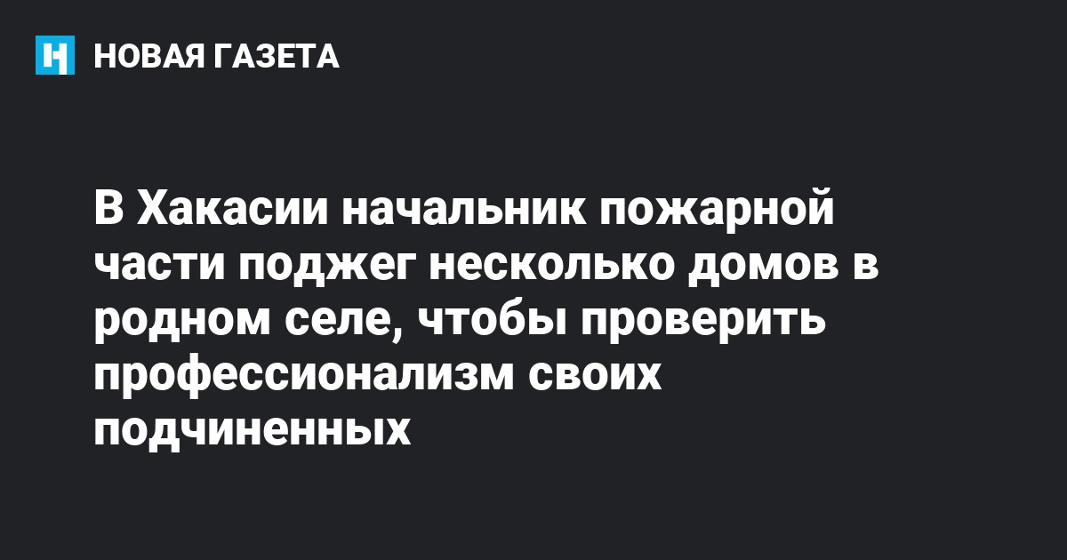 В одном из сел Хакасии начальника пожарной части Ивана Шнайдера обвинили в поджоге нескольких домов местных жителей. Свои действия он объяснил тем, что собирался проверить профессионализм своих подчиненных, сообщает телеканал «Вести Хакасия».