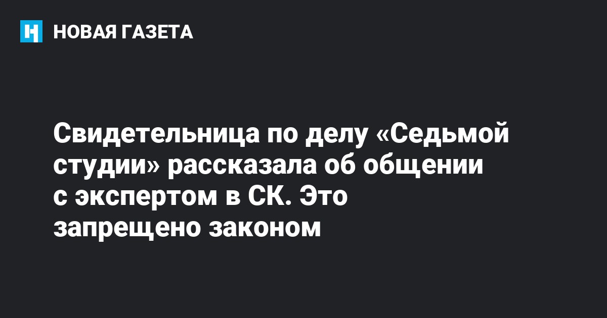 Свидетель по делу «Седьмой студии» Татьяна Жирикова рассказала, что в Следственном комитете общалась с экспертом Татьяной Рафиковой, проводившей первую экспертизу по просьбе следствия, пишет «МБХ медиа».