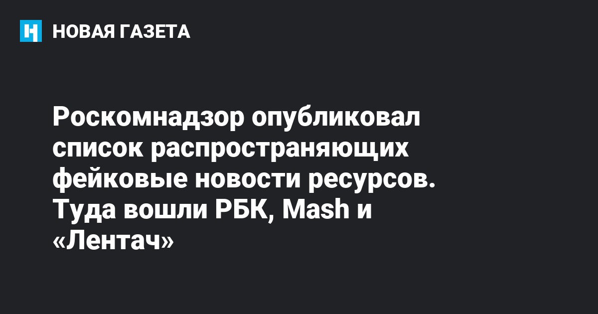 В составленную Роскомнадзором тестовую версию списка ресурсов, которые распространяют недостоверную информацию, вошли РБК, «Газета.ру», паблики Mash, «Лентач» и MDK. Об этом сообщается на сайте ведомства.