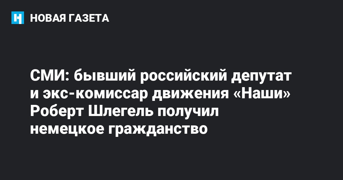 Бывший депутат Госдумы от «Единой России» и экс-комиссар созданного администрацией президента молодежного движения «Наши» Роберт Шлегель весной получил гражданство Германии. Об этом сообщает немецкая газета Süddeutsche Zeitung.