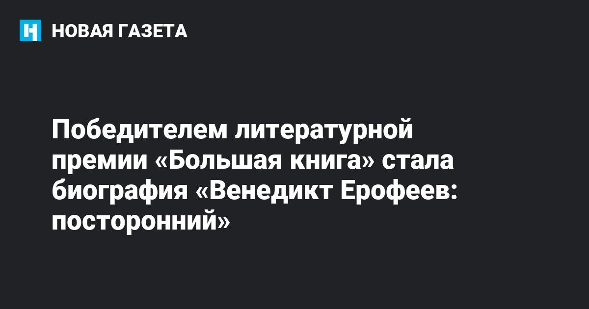 В Москве в Доме Пашкова завершилось награждение лауреатов XIV сезона Национальной литературной премии «Большая книга». Первое место заняла книга «Венедикт Ерофеев: посторонний» Олега Лекманова, Михаила Свердлова и Ильи Симановского.
