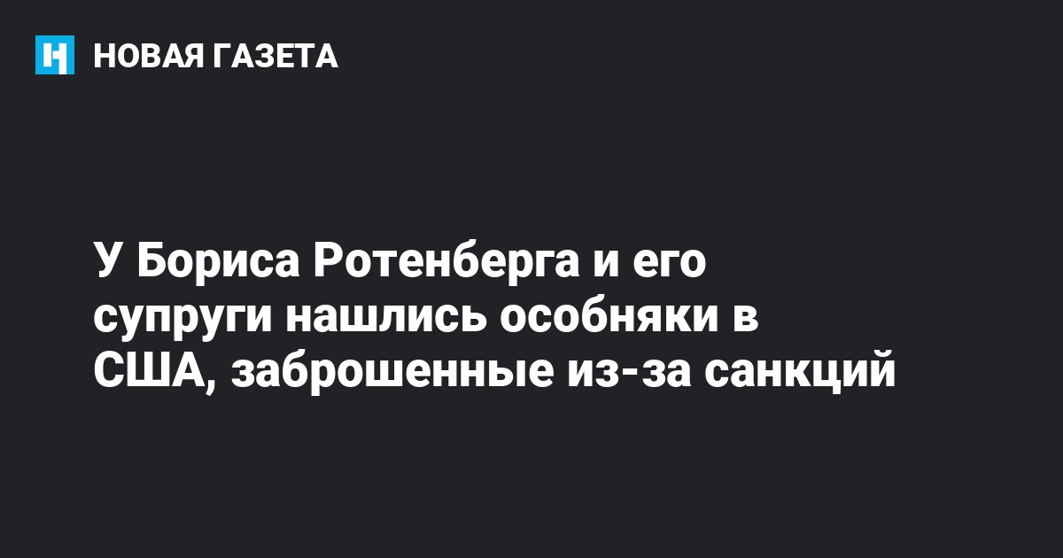 «Новая газета» и «Трансперенси интернешнл – Россия» выяснили, что знакомый российского президента, находящийся под санкциями бизнесмен Борис Ротенберг вместе с женой Кариной все еще владеет недвижимостью в Америке.
