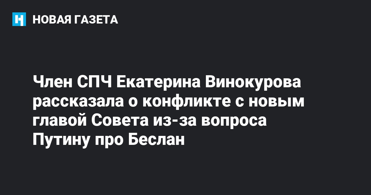 Журналистка сообщила, что конфликт с Фадеевым произошел 12 декабря после заседания СПЧ с участием президента. «Мне сказали, что я похитила полчаса времени президента на какой-то там Беслан», — сказала Винокурова. По ее словам, Путину до сих пор не передали доклады по выборам и другим вопросам. Журналистка считает, что из-за вопроса про Беслан ее могут исключить из Совета.