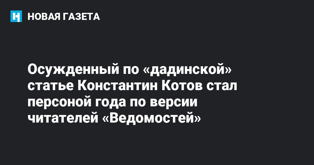 Котов победил в номинации «Частное лицо», за него проголосовало большинство читателей. Редакция газеты выбрала персоной года студента НИУ ВШЭ и фигуранта «московского дела» Егора Жукова. В этой же категории представлены основатель автодилера «Рольф» Сергей Петров, правозащитник Лев Пономарев, экоактивистка Грета Тунберг и основатель Alibaba Group Джек Ма.