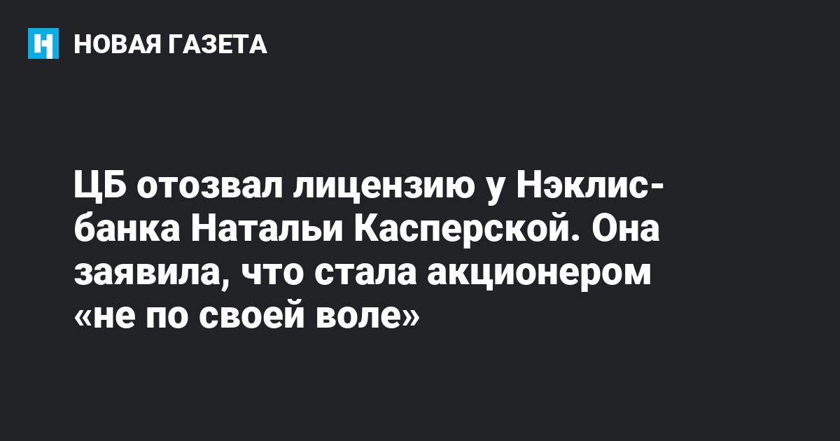 Центробанк отозвал лицензию у Нэклис-банка, больше половины акций которого принадлежит гендиректору компании InfoWatch и сооснователю «Лаборатории Касперского» Наталье Касперской. Об этом сообщается на сайте регулятора.