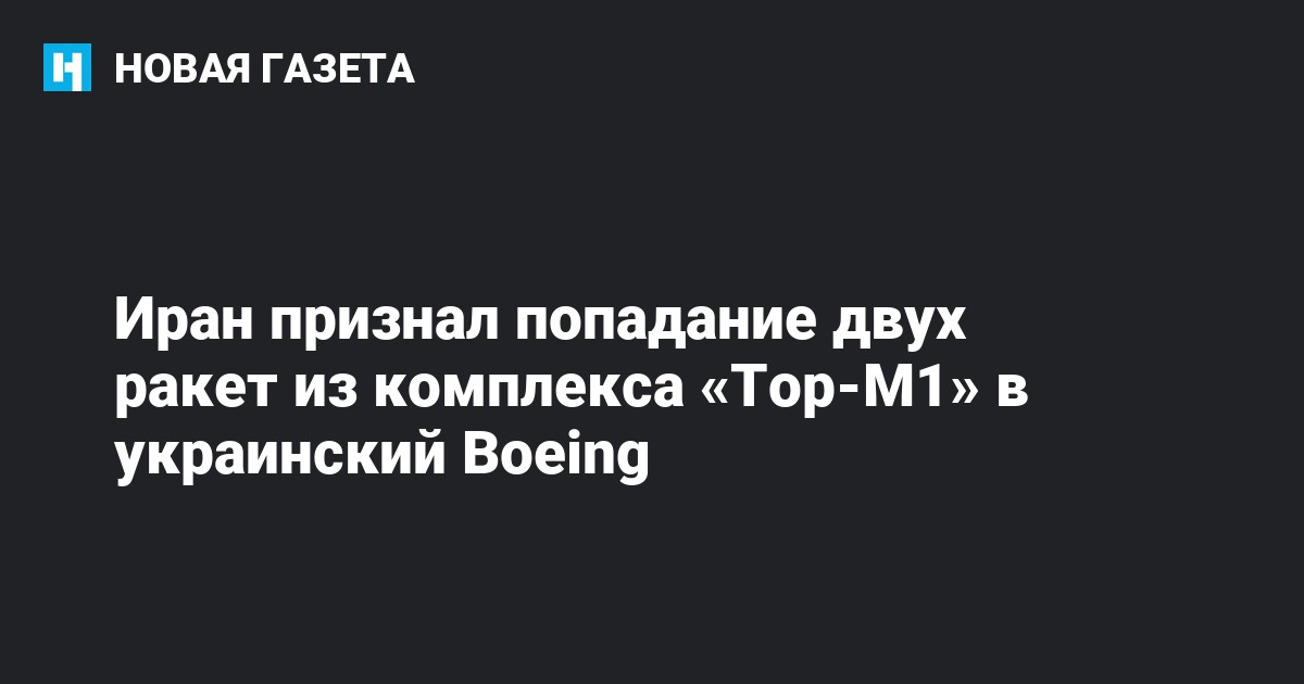 Иран признал, что украинский Boeing, разбившийся после вылета из аэропорта Тегерана, был сбит двумя ракетами, выпущенными из комплекса «Тор-М1». Об этом сообщается в предварительном отчете Организации гражданской авиации Ирана.
