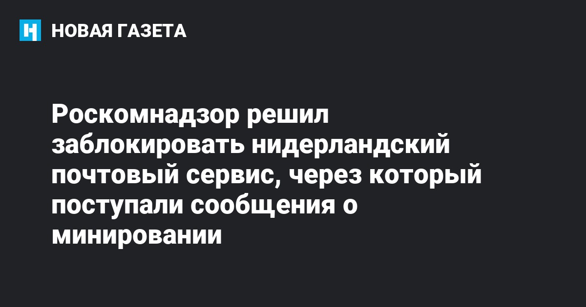 Генпрокуратура и Роскомнадзор потребовали ограничить доступ к нидерландскому почтовому сервису Startmail.com, с ящиков которого в Россию поступили сообщения о минировании. Об этом сообщает Федеральная служба безопасности.
