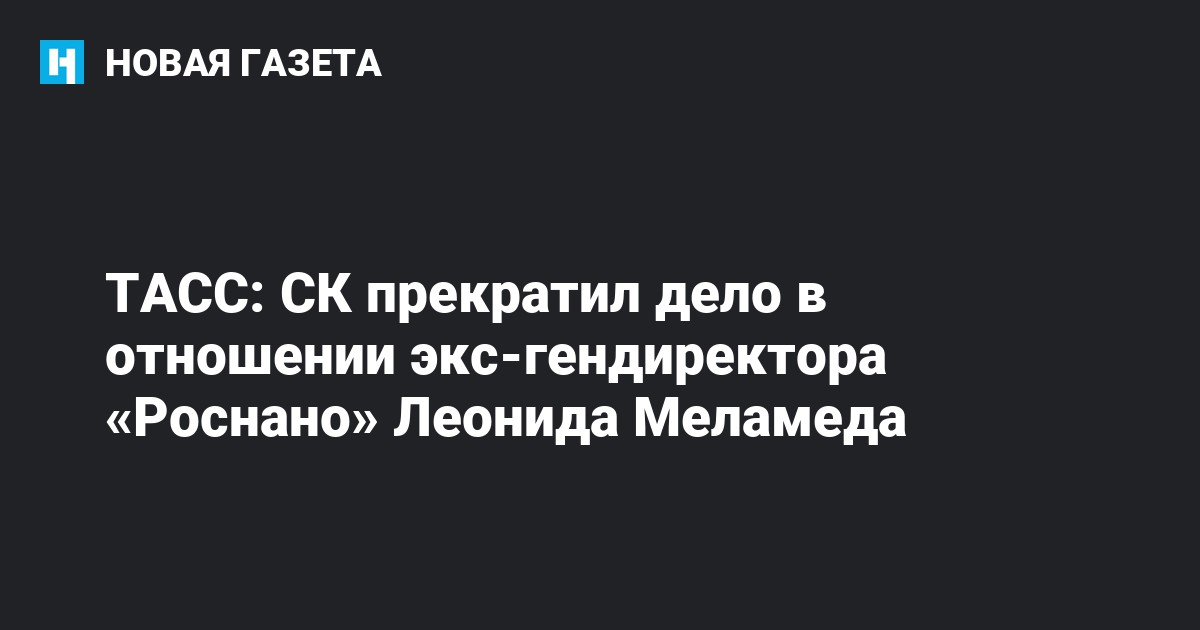Следственный комитет прекратил за истечением сроков давности уголовное дело в отношении бывшего гендиректора «Роснано» Леонида Меламеда, которому инкриминируется растрата свыше 220 млн рублей. Об этом сообщает ТАСС со ссылкой на источник в правоохранительных органах.