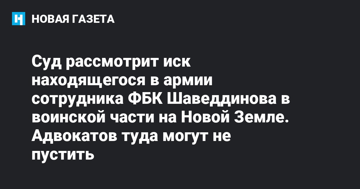 Архангельский гарнизонный военный суд перенес на Новую землю рассмотрение иска сотрудника Фонда борьбы с коррупцией (ФБК) Руслана Шаведдинова с требованием разрешить пользоваться телефоном, отправлять и получать письма во время срочной службы. Об этом рассказала пресс-секретарь ФБК Кира Ярмыш.