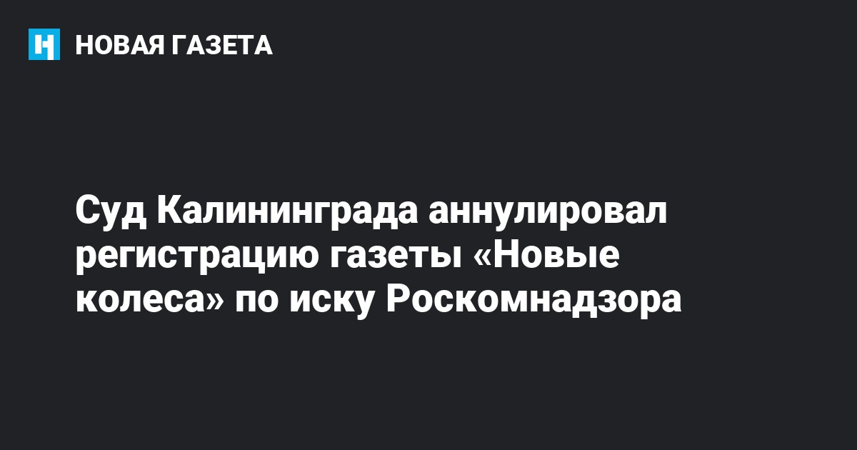 Центральный районный суд Калининграда аннулировал регистрацию газеты «Новые колеса», удовлетворив иск Роскомнадзора. Об этом сообщил главный редактор издания Игорь Рудников.