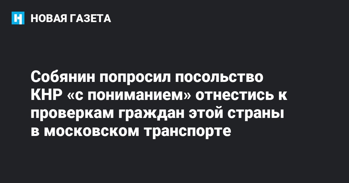 Ранее «Новая газета» опубликовала письмо из посольства КНР к московским властям с просьбой прекратить проверки китайских граждан в общественном транспорте. Дипломаты напомнили о недопустимости дискриминации китайцев.
