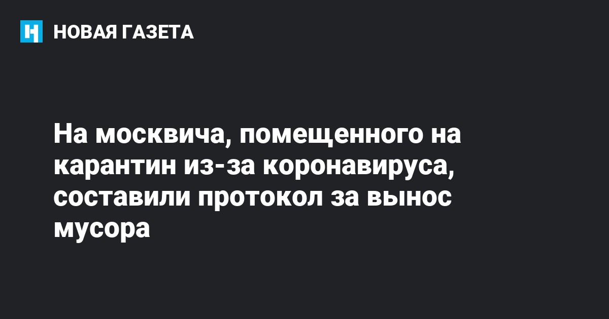 Москвич вышел вынести мусор 3 марта, и на следующий день ему позвонил полицейский. Вечером правоохранитель вручил Воронину уведомление о недопустимости повторного нарушения, в противном случае его могли изолировать принудительно. В итоге 5 марта на Воронина составили протокол о невыполнении законного предписания (ч. 1 ст. 19.5 КоАП).