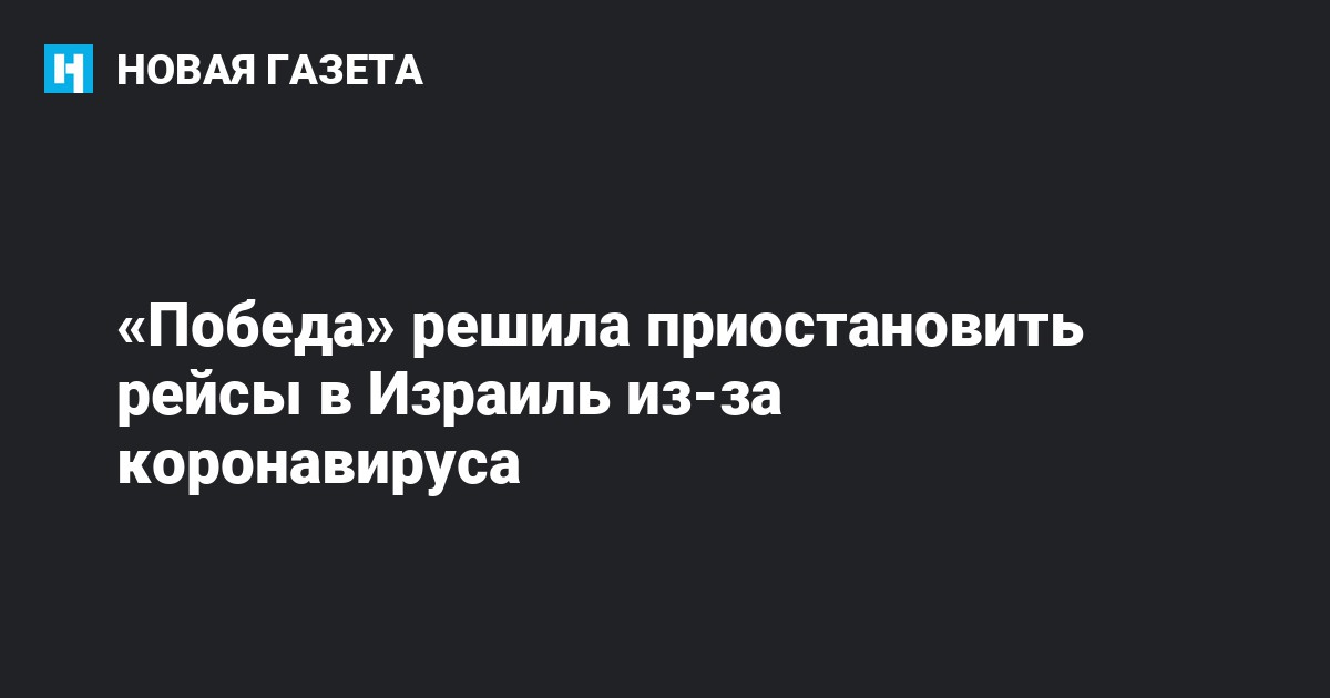 Авиакомпания «Победа» из-за распространения коронавируса приостановит рейсы в Израиль в период с 12 марта по 12 мая. Об этом сообщается на сайте авиакомпании.