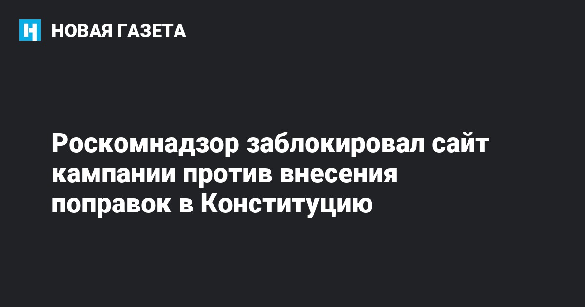 Роскомнадзор заблокировал сайт кампании «Нет!», на котором шел сбор подписей против поправок в Конституцию. Об этом «Новой газете» сообщили представители московского комитета кампании.