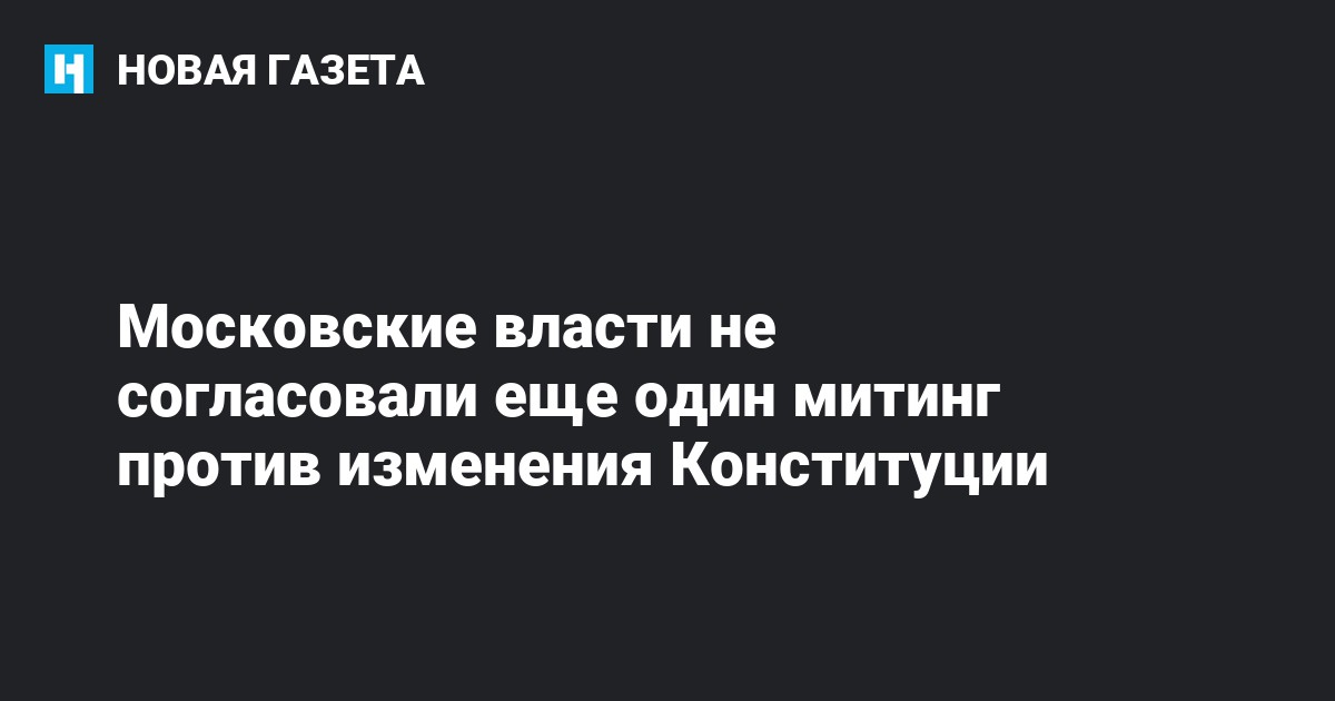 Московская мэрия не согласовала кампании «НЕТ» митинг против изменения Конституции, который планировалось провести 22 марта в Новопушкинском сквере. Документ об отказе опубликовала у себя в фейсбуке одна из заявительниц акции Татьяна Усманова.