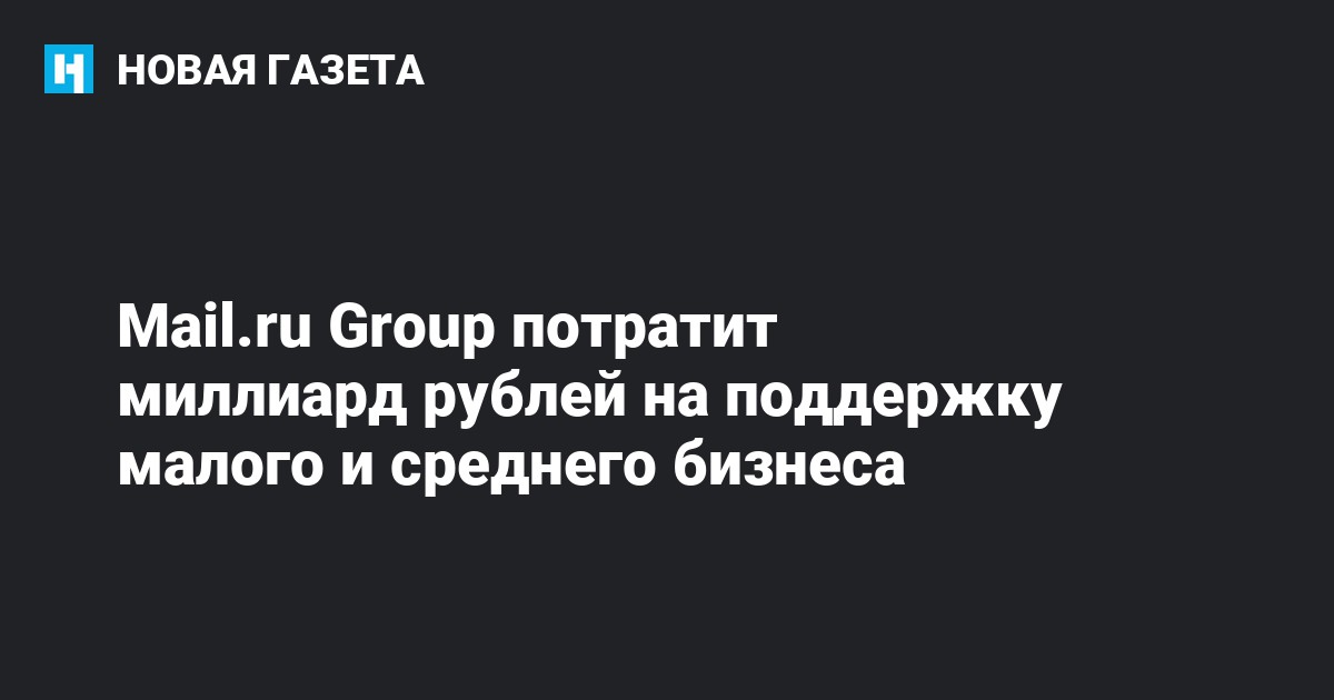 Mail.ru Group создала оперативный штаб и выделит один миллиард рублей для поддержки малого и среднего бизнеса. Об этом «Новой газете» сообщили в пресс-службе Mail.ru Group.