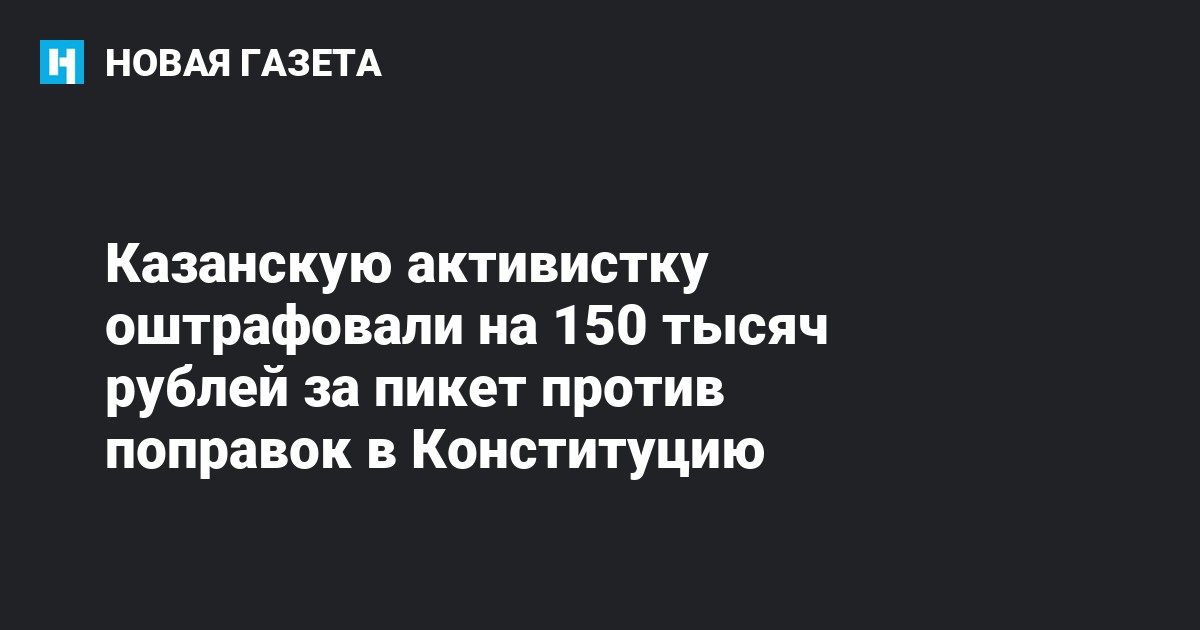 Суд в Казани оштрафовал на 150 тысяч рублей активистку и координатора общественной кампании «НЕТ!» Марину Шоетову за пикет против поправок в Конституцию. Об этом сообщает телеграм-канал «Протестная Казань».