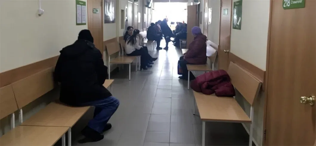 Пациенты местной поликлиники в очередях к врачам тоже сидят без масок. Но каждый, кто заходит в больницу, останавливается у входа и тщательно обрабатывает руки закрепленным на стене антисептиком. Это, заметно по реакции, людям в диковинку.