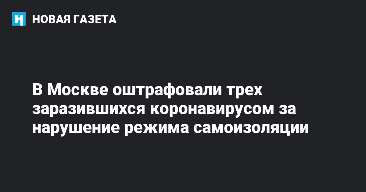 В Москве трех местных жителей с положительным тестом на коронавирус оштрафовали на четыре тысячи рублей из-за нарушения режима самоизоляции, который они должны были соблюдать дома. Об этом РИА Новости сообщил начальник главного контрольного управления мэрии Москвы Евгений Данчиков.