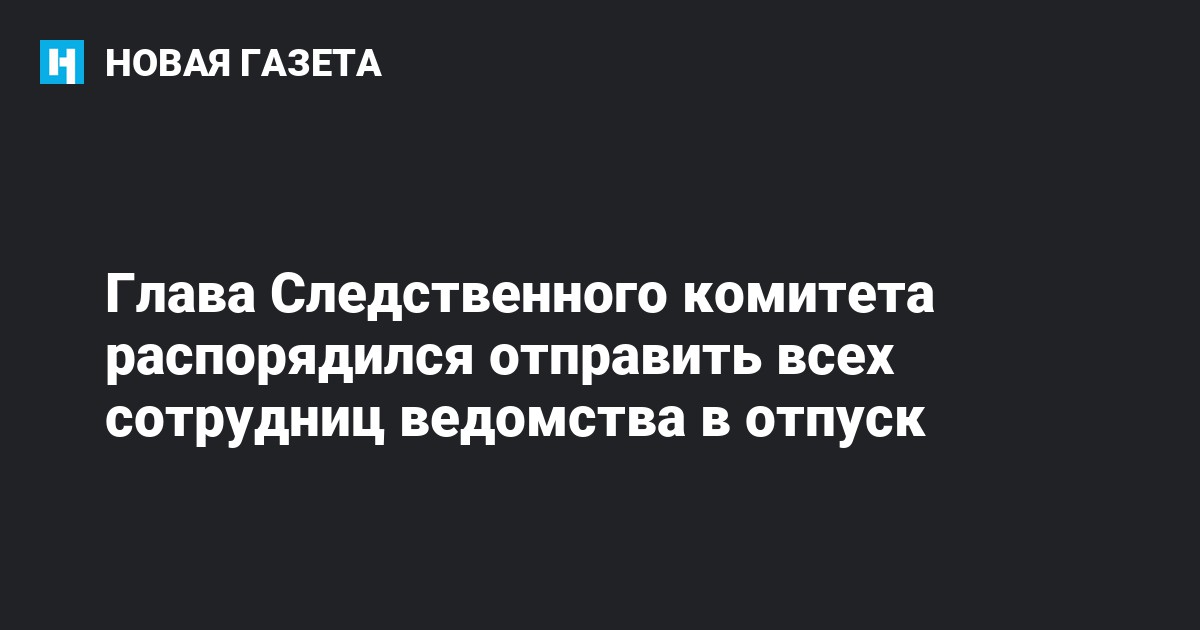 Председатель Следственного комитета Александр Бастрыкин в связи с эпидемиологической обстановкой издал распоряжение о временном освобождении от работы всех женщин, проходящих службу в подчиненном ему ведомстве. Копия документа есть в распоряжении «Новой газеты».
