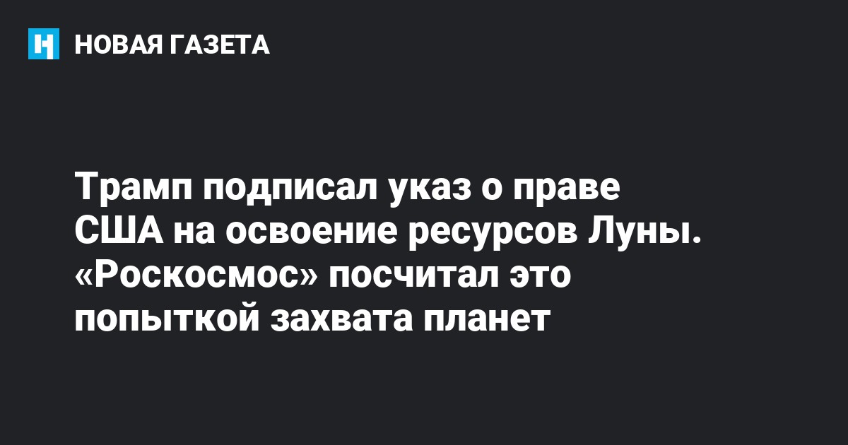 Президент США Дональд Трамп подписал указ о коммерческом освоении ресурсов на Луне и других небесных телах. Об этом говорится на сайте Белого дома.