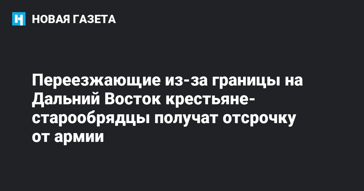 Согласно документу, с такой просьбой к Путину обратился предстоятель Русской православной старообрядческой церкви Митрополит Корнилий: «Предоставлять право на получение в 2020-2025 годах отсрочки от призыва соотечественникам из числа старообрядцев, прибывшим из-за рубежа на постоянное место жительства в субъектах Дальневосточного федерального округа», — говорится там.