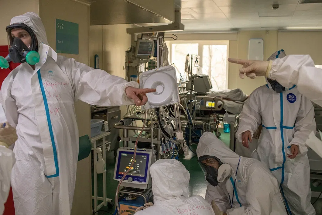 52-я больница — одна из самых больших больниц Москвы — практически первая в России включилась в битву с коронавирусом. С 29 февраля она принимает пациентов с COVID-19. С марта — регулярные телемосты с американскими, немецкими и китайскими врачами. Сейчас в больнице 794 пациента с пневмониями, у 547 подтвержден коронавирус, из них в реанимации — 108. Здесь работают 642 врача, 976 медсестер и 74 санитара — все, кроме сотрудников родильного дома при больнице. Некоторые приехали помогать из регионов, медсестрами пришли дети из медицинских колледжей и вузов. Для медиков организованы гостиницы, построено быстровозводимое общежитие. Почти всем пришлось переквалифицироваться.