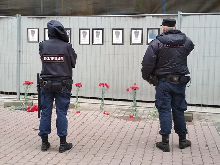 В Петербурге 28 апреля прямо напротив здания комздрава на Малой Садовой улице появилась стена памяти погибших медиков. На ней 8 имен, два с фотографиями. Создала ее по собственной инициативе петербурженка Ирина Маслова. Кто-то немедленно вызвал полицию, чтобы пресечь несанкционированное безобразие. Двое полицейских долго стояли, не зная, что с этим делать. Сорвать листочки А4 с именами медиков у них рука не поднялась. Постояли — и уехали.
