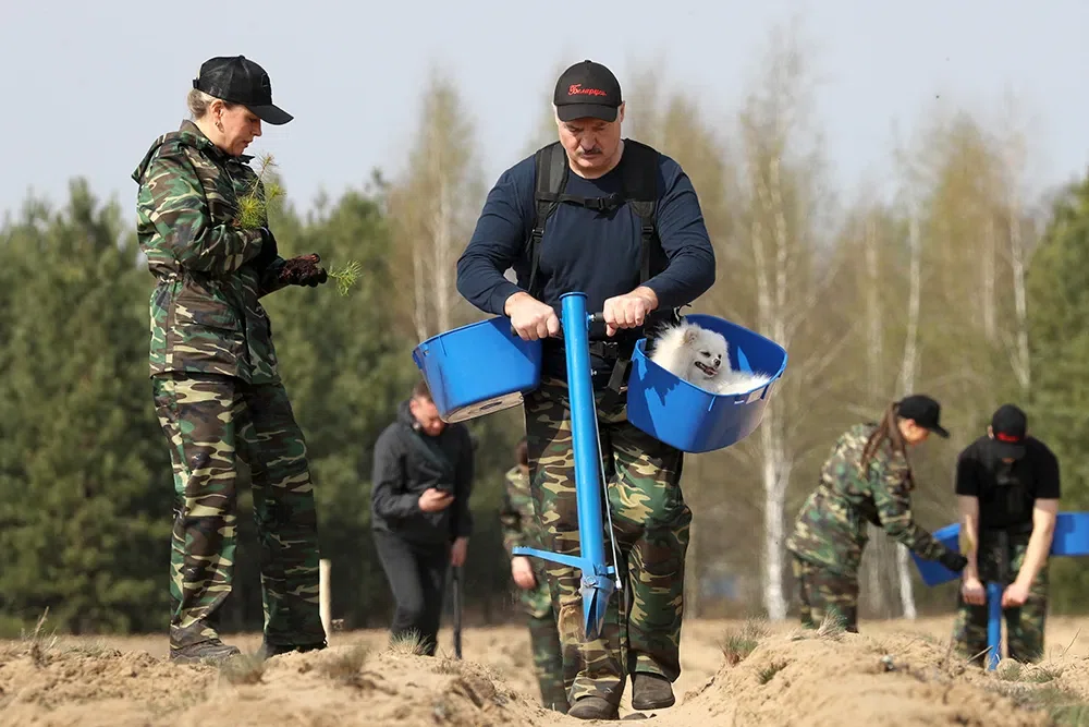 Александр Лукашенко в тот день занимался высадкой деревьев в национальном парке «Припятский», где находится одна из его резиденций. Как обычно, рядом находился младший сын Николай с саженцами. А на плече у Лукашенко висела корзинка с белым шпицем. Ровно такую же описал когда-то Чехов. А сейчас с белыми шпицами выходят в свет Филипп Киркоров и Ольга Бузова. Шпиц в пластмассовой корзинке посреди поля во время субботника - это, кажется, и есть квинтэссенция стиля «агрогламур».