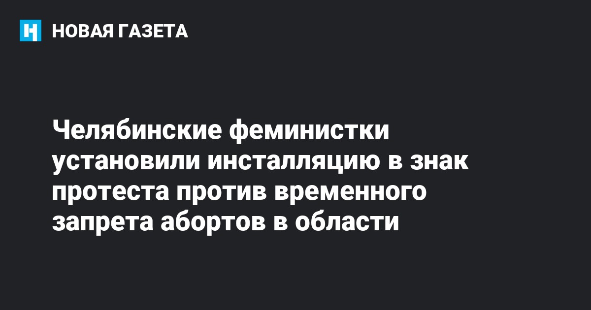 В Челябинске феминистки установили инсталляцию напротив здания областного Минздрава. Таким образом они выступили против временного запрета на аборты, который введен в регионе.