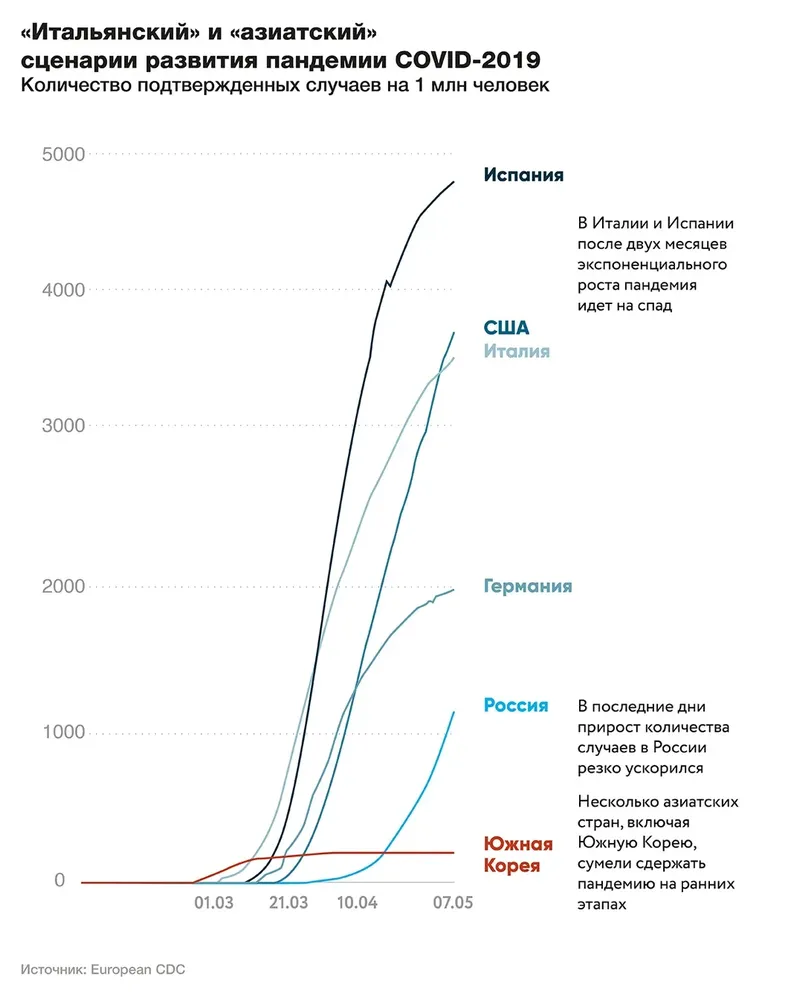 В марте доктора не исключали, что Россию может ждать «итальянский сценарий» эпидемии: неконтролируемый рост числа заболевших, нехватка аппаратов ИВЛ, высокая смертность. Спустя полтора месяца и врачи, и власти стали говорить о том, что стране удалось этого избежать и заболеваемость вышла на плато.