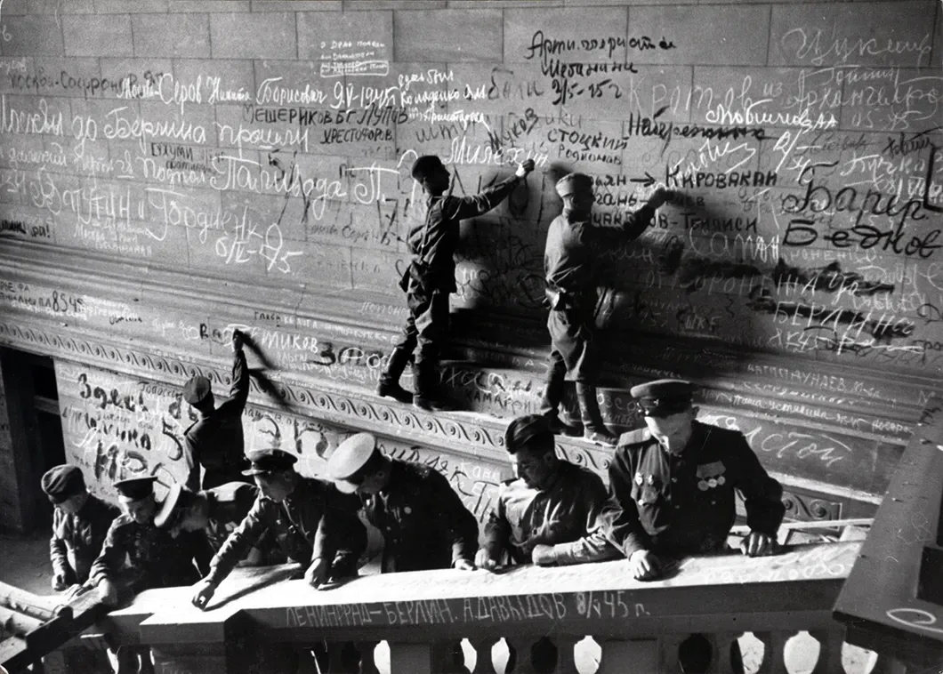Анатолий Морозов. «Советские солдаты оставляют надписи на стенах Рейхстага», 1945 год, из коллекции МАММ