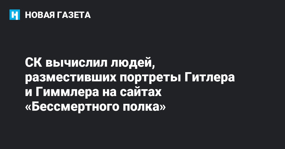 Следственный комитет России нашел людей, причастных к размещению на сайтах акции «Бессмертный полк – онлайн» портретов нацистов Адольфа Гитлера и Генриха Гиммлера. Об этом сообщается на сайте ведомства.