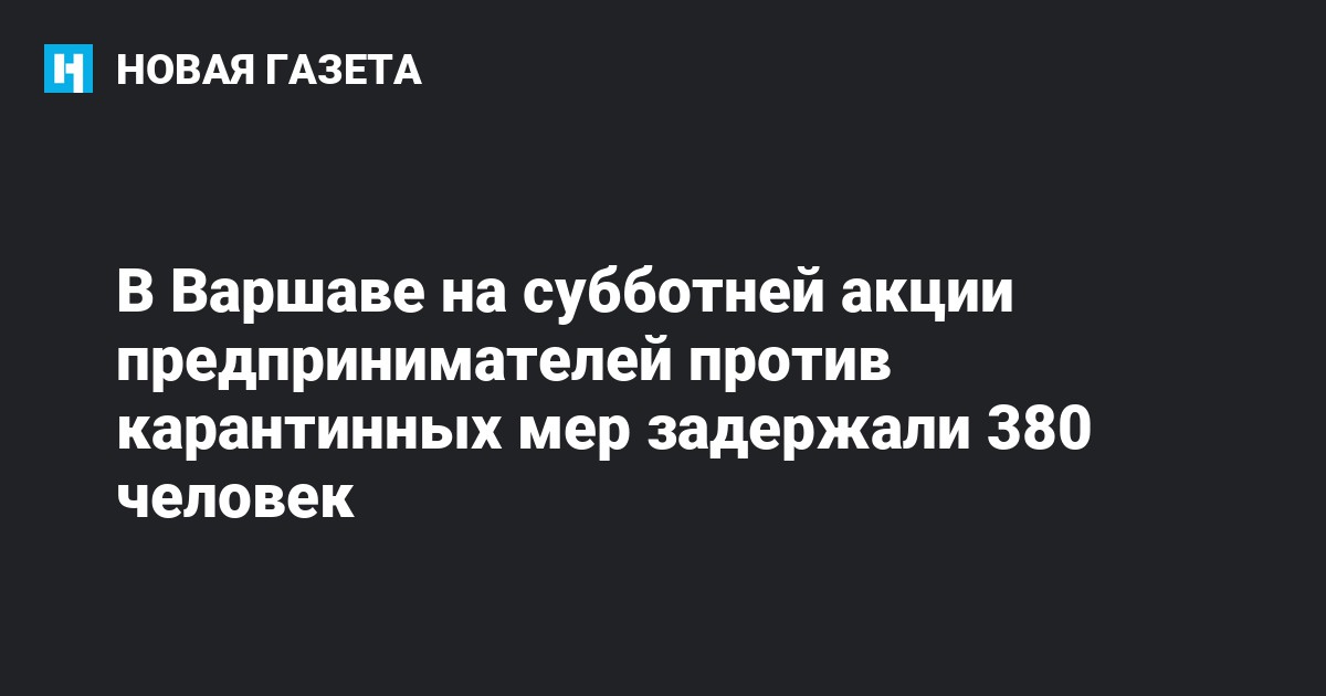 В Варшаве на акции предпринимателей, выступающих за отмену ограничений, введенных из-за пандемии коронавируса, задержали 380 человек. Об этом пишет местная газета Wyborcza со ссылкой на данные полиции.